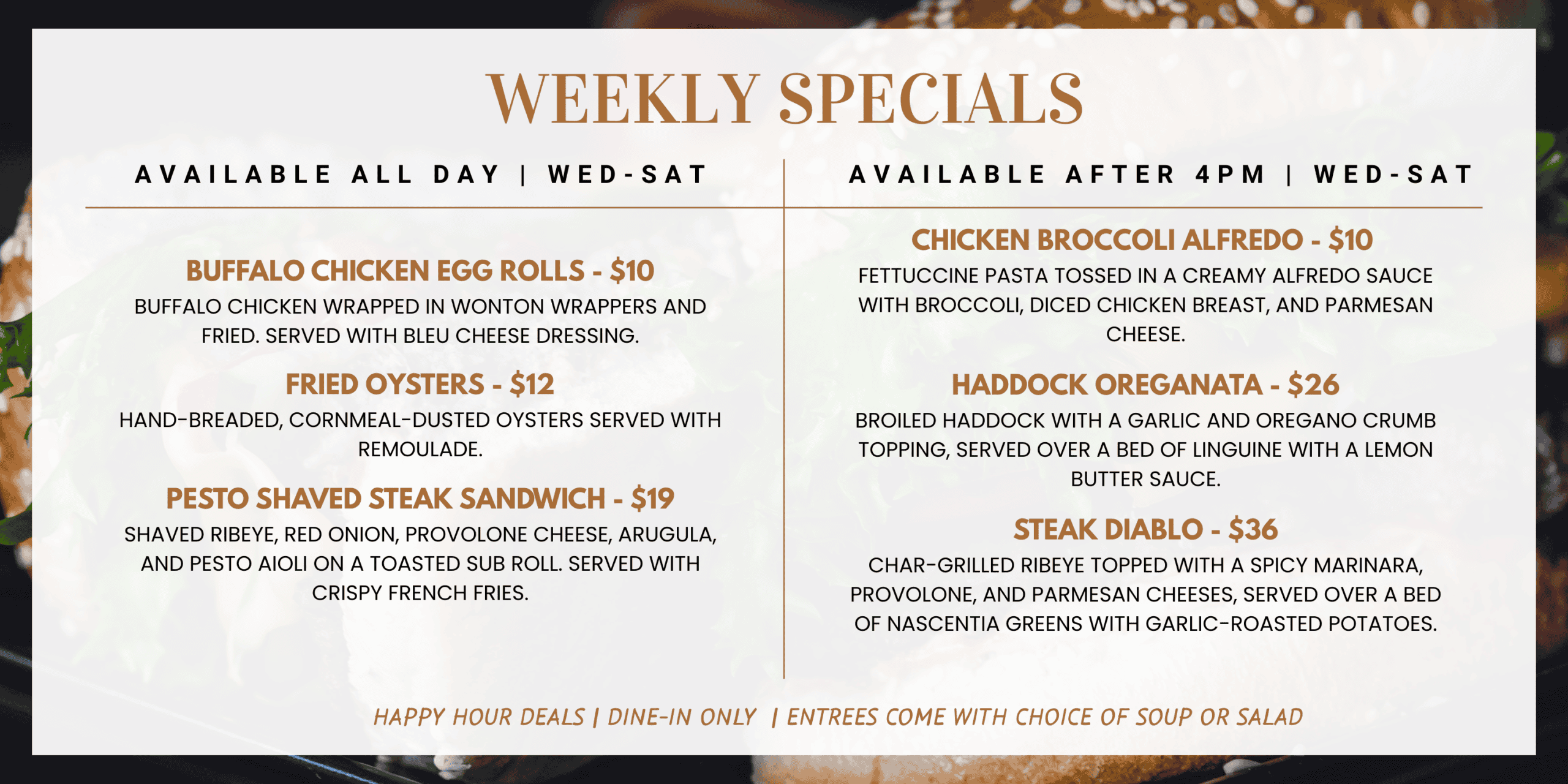 Discover Beeches Manor, part of Nascentia Neighborhood, where timeless charm meets a relaxed yet upscale dining experience. Our chef-driven menu blends fresh, local ingredients with creative weekly specials and familiar favorites. From a classic burger to elegant entrées like osso bucco or filet mignon, every meal is served with warm hospitality and unforgettable flavor.