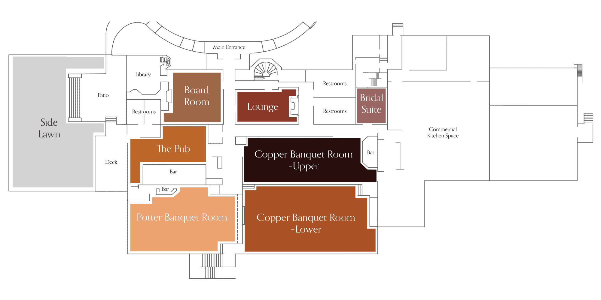 The Indoor Buyout offers full private use of Beeches Manor’s historic interior spaces, creating a memorable setting for any event. It provides exclusive access to the Copper Banquet Room, Potter Banquet Room, Board Room, Library, Lounge, The Pub, and Bridal Suite, allowing guests to experience the estate’s character and architectural charm. Blending timeless elegance with comfort and flexibility, the Indoor Buyout is ideal for weddings, galas, and milestone celebrations.