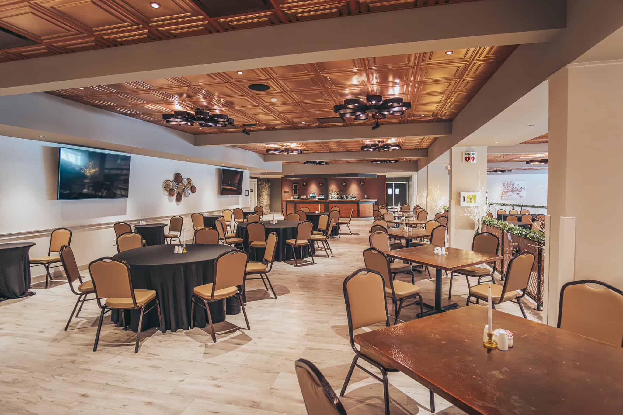 - Two 75-inch TVs (Copper Room)