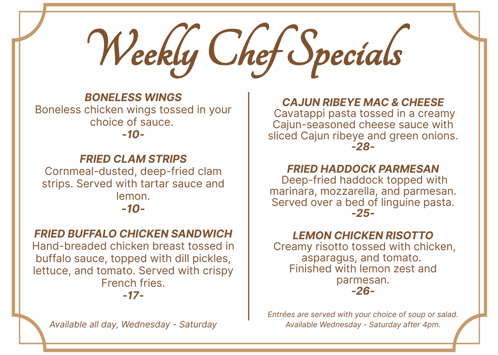 Fried or broiled haddock, shrimp, and scallops. Served with french fries, coleslaw, tartar sauce, and cocktail sauce.