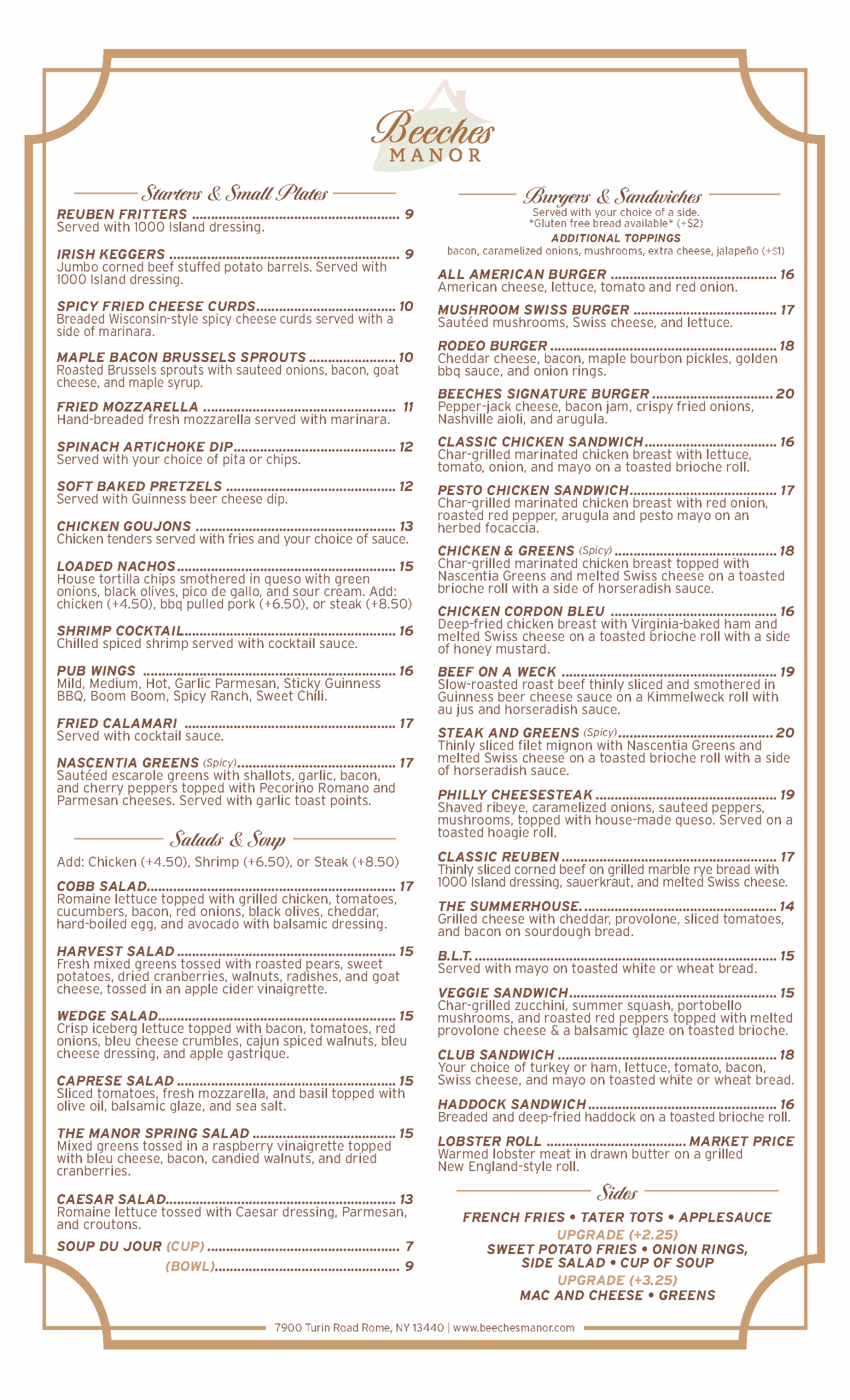 Slow-roasted roast beef thinly sliced and smothered in Guinness beer cheese sauce on a Kimmelweck roll with au jus and horseradish sauce.